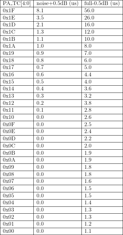 | 0x10 | 0x09 | PREAMBLE_POSTAMBLE_CONFIG | 0x00 | Configuration of Postamble functionality and the Postamble pattern bits. | ||
